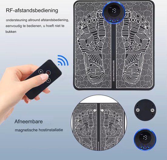 Voel je je vermoeid en gestrest? Zijn je voeten pijnlijk na een lange dag werken? Probeer onze voetmassage mat! Met behulp van elektrische spierstimulatie richt het apparaat zich op specifieke drukpunten om pijn en ongemak te verlichten. Ideaal voor mensen die veel staan, helpt onze voetmassage mat ook de bloedcirculatie te verbeteren, vermoeidheid te verminderen en spieren te ontspannen. Voel direct verlichting. Probeer het nu en ervaar het verschil!