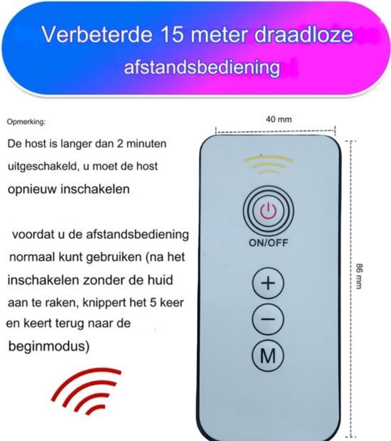 Let op:Dit apparaat is niet geschikt voor mensen met epileptische aanvallen, zwangere vrouwen, of mensen met een geïmplanteerde defibrillator.