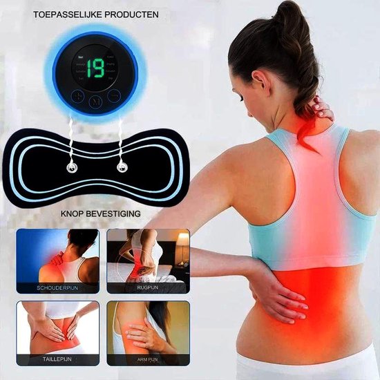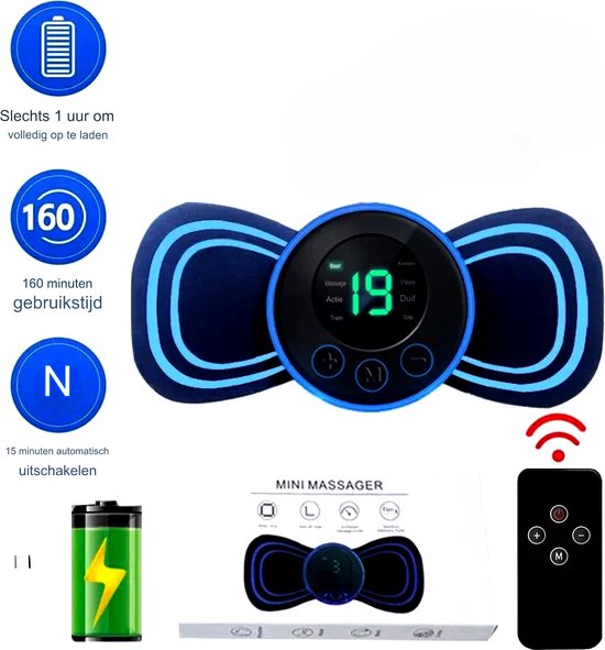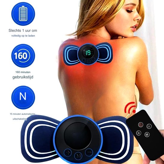 FineMart – Massage Apparaat met Afstandsbediening – Neuropathie Bloedcirculatie – Mini EMS Massage – Voor Nek Rug Taille Armen Benen Pijn – EMS – 8 Mode 19 Niveaus – Tens Apparaat – Draadloos – 152 standen